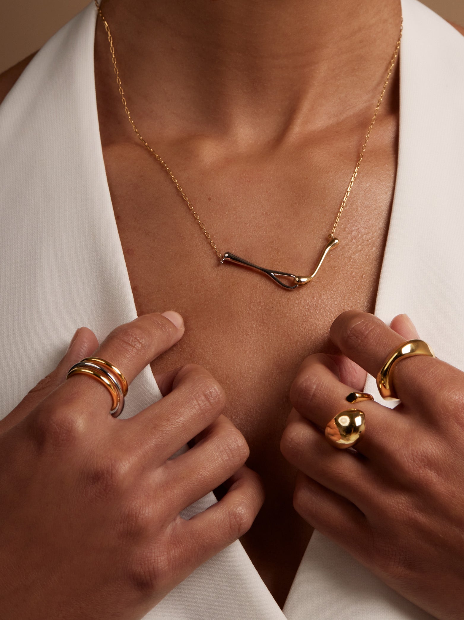 18K gold-plated ring features a smooth, expansive dome-shaped surface. The open band allows for adjustability, blending style with comfort.