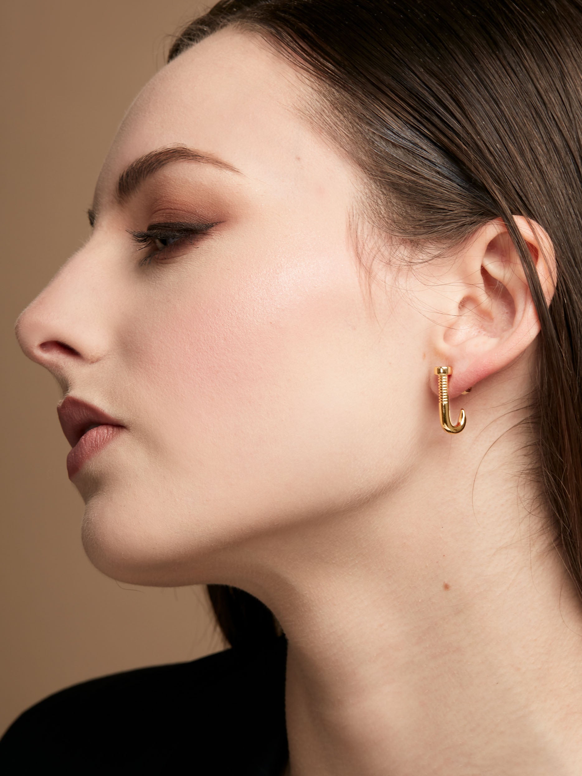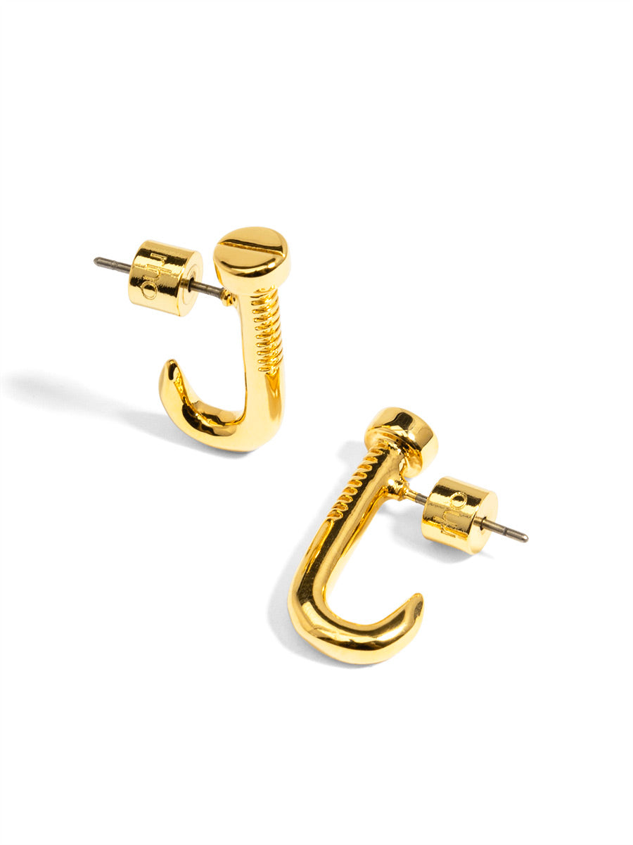 Stud earring plated in 18K gold with a nail shape silhouette.