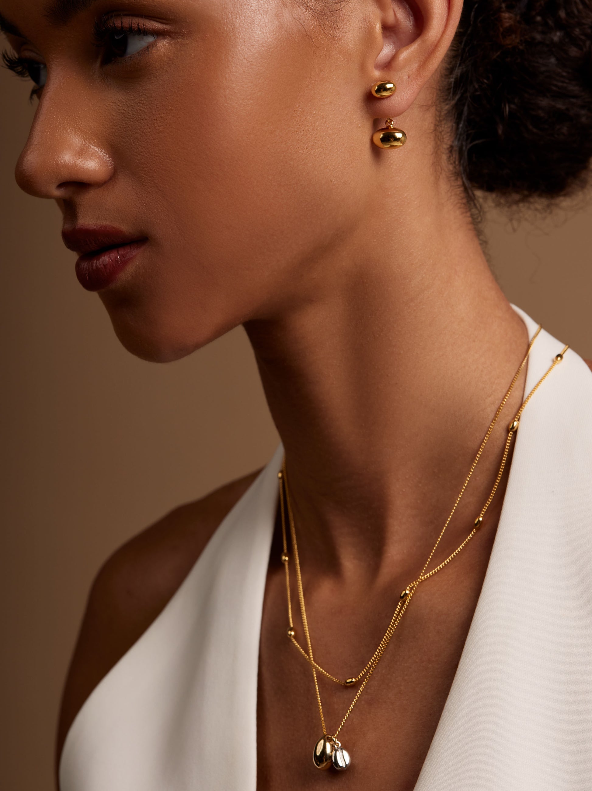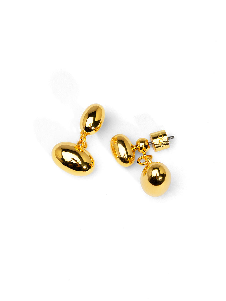 18K gold-plated ear jacket with two different sized bean-shaped accents.
