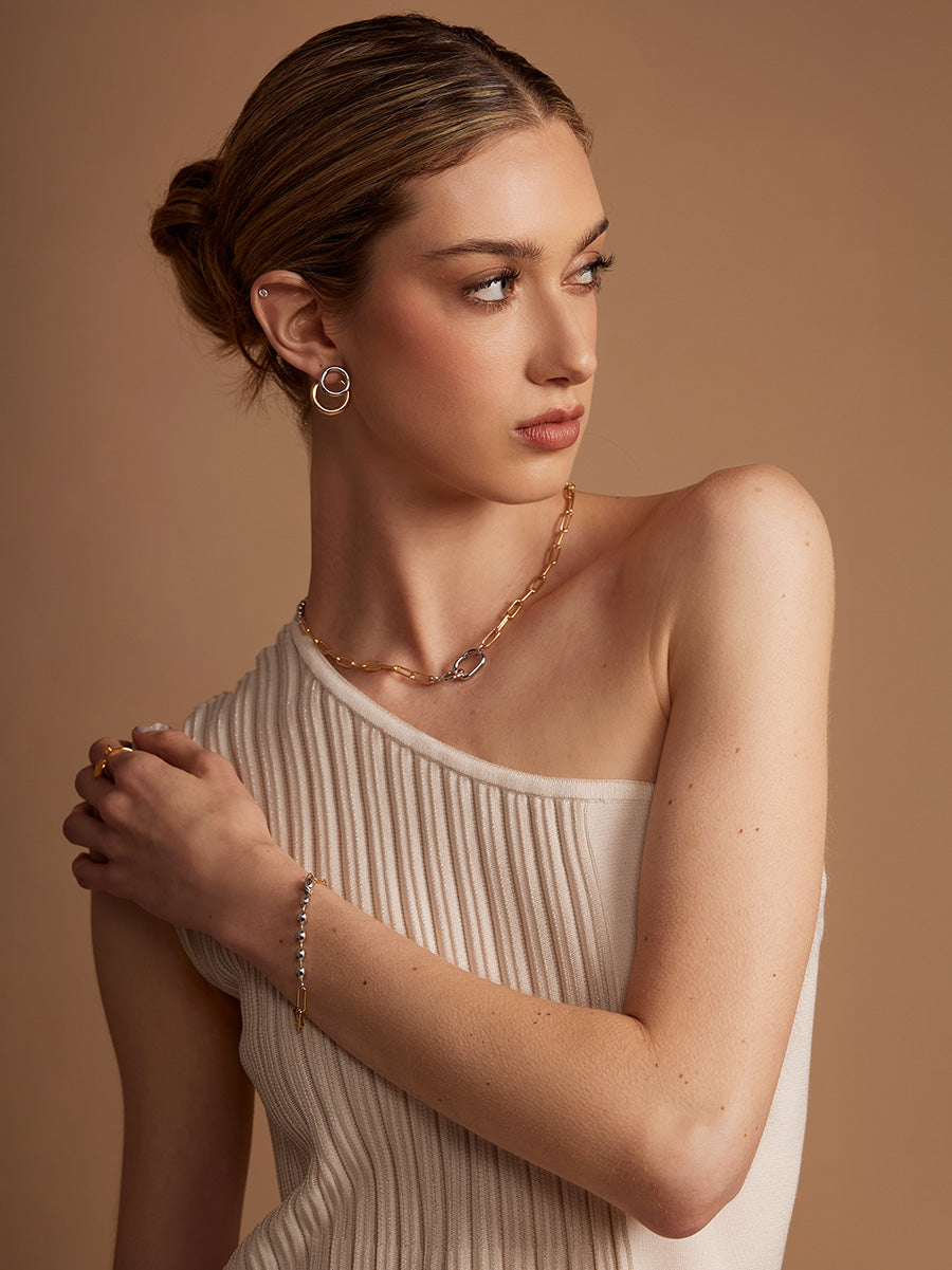 Two-Tone Beaded Mixed Link Magnet Bracelet