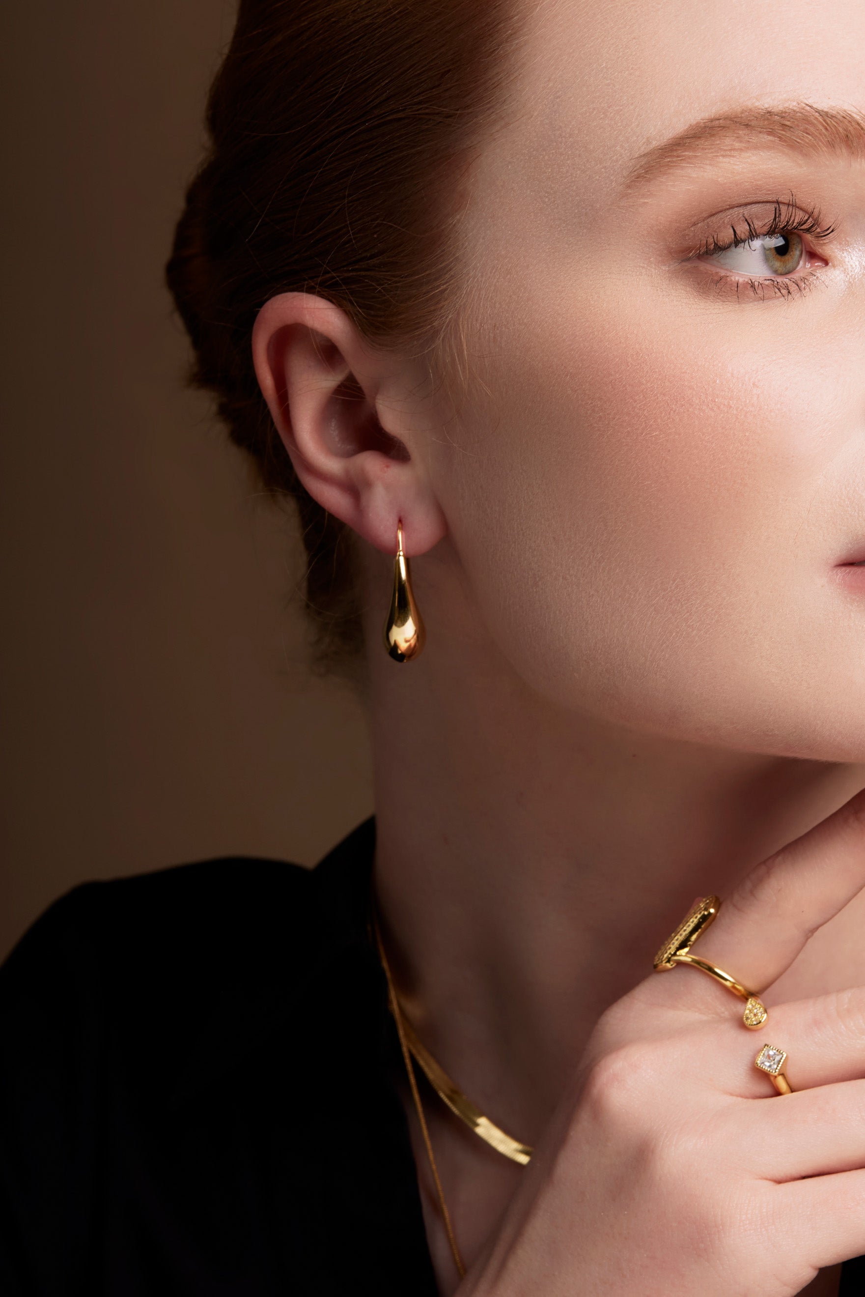 These elongated, molten-style earrings bring soft drama with a sculptural teardrop silhouette.