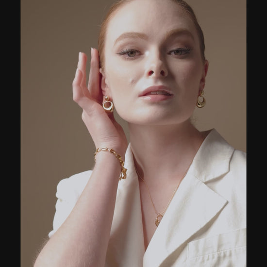 Pendant necklace featuring a polished, crescent-shaped charm that resembles a delicate drop of water.